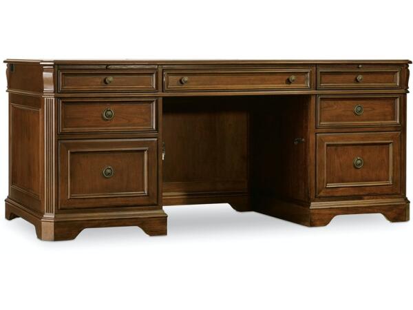 For the working professional looking for an executive desk that incorporates full functionality and generous storage, the Avery design offers an elegant design solution. The working side incorporates five storage drawers and two letter/legal file drawers. The face of the desk features a beautiful concave front flanked by raised panels. The writing surface is a correlated gray faux leather.