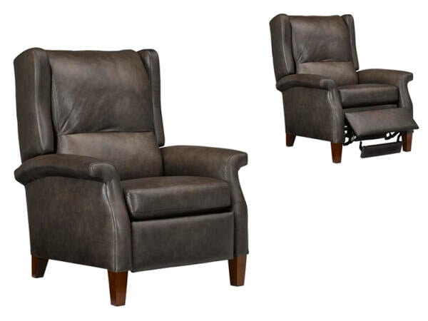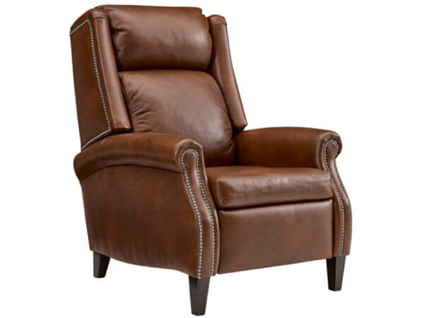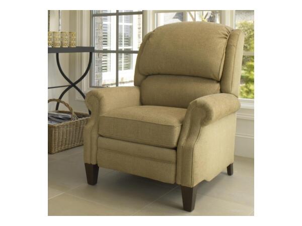 A right-arm-facing recliner with dual power zero-wall recline and a synchronized power headrest for customized positioning. This piece includes ultra-soft plush seating and an elegant butter knife arm.