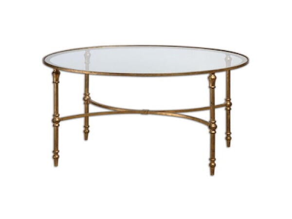 Designed to nest as an oversized coffee table with the ability to completely separate, crafted from hand forged iron and finished in a heavily antiqued gold leaf. 42 W X 18 H X 42 D (in)