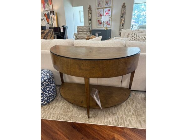 The Chapman Console Table combines a shapely, slim Art Deco silhouette with White Oak Veneers in a warm brown Sorrel finish that reveals the woodgrain, accented by forged pewter ferrules. The narrow 16-inch deep console is versatile for a variety of spaces. Width: 80″ (203.2 cm) Depth: 16 1/4″ (41.3 cm) Height: 34 1/4″ (87 cm